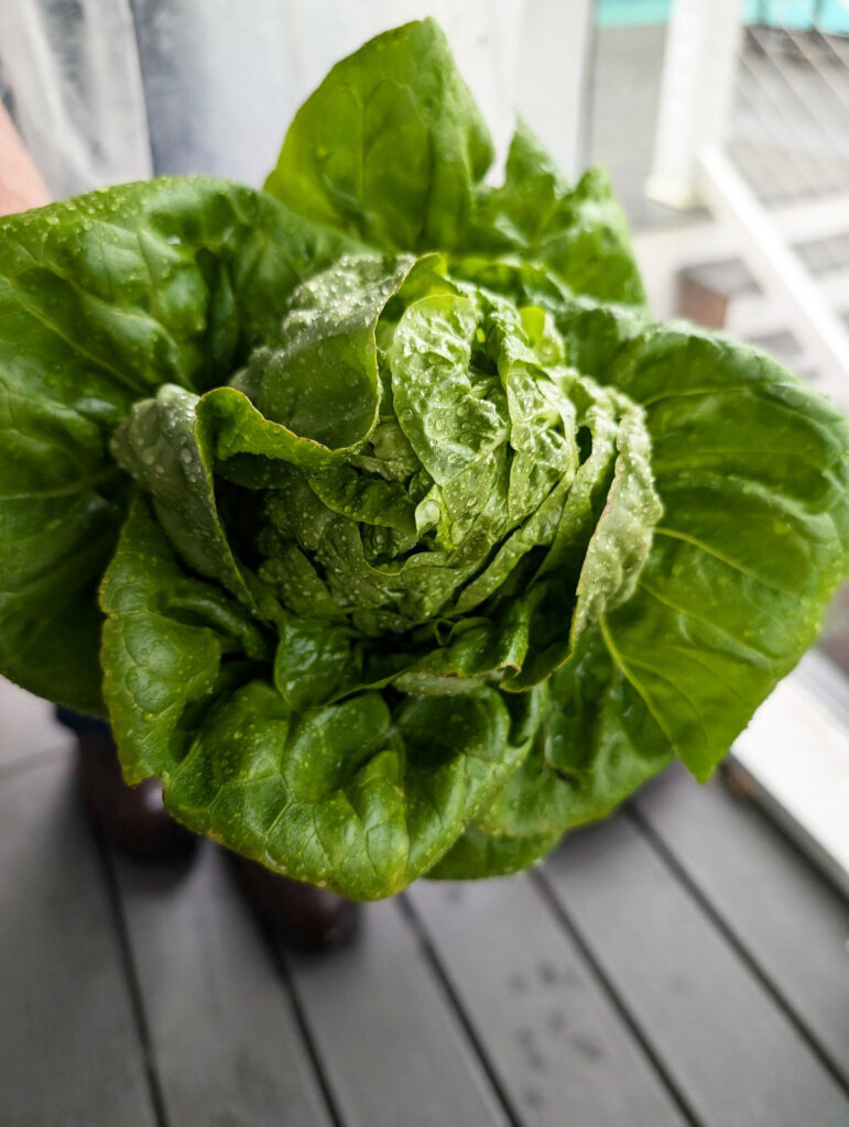 But growing them outside in the fall has been awesome! I mean, look at that…isn’t it beautiful? And it tastes better than grown inside, I guess the real sunshine makes it better. This is a “Little Gem”.