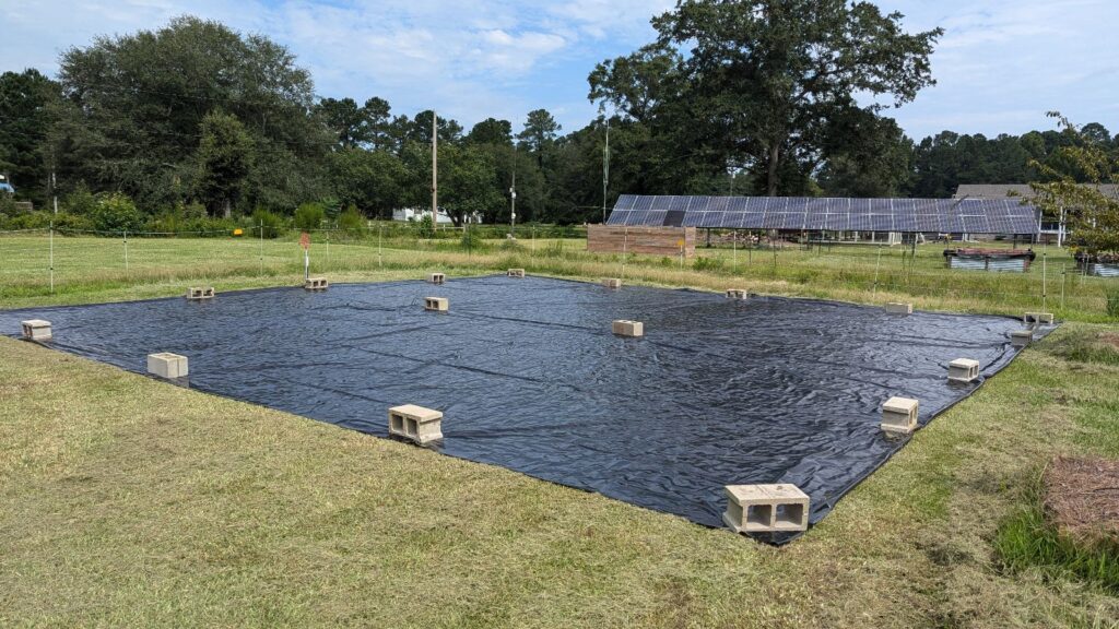To prep our ground, George took some soil samples to the Clemson exchange office and had it tested. Then he covered the areas with thick garden plastic to kill all the grass and weeds. In a couple of months, we will till in some amendments based on the test results and cover it up again until spring planting time.